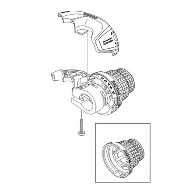 Cette manette de commande rotative de changement de vitesses Shimano permet de changer les 6 vitesses de la cassette arrière sans avoir à quitter les mains du guidon. La manette rotative se monte à droite sur le guidon dans la prolongation de vos poignées.